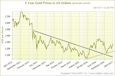 Elsősorban a geopolitikai feszültségek növekedésének köszönhető, hogy az utóbbi napokban a korábbinál is lendületesebben emelkedett az arany árfolyama. Miközben a részvénypiacok még mindig jól tartják magukat, a biztos menedéknek számító eszközök – köztük az amerikai állampapírok, a japán jen, az arany és az ezüst – iránt megnőtt a kereslet, így ezek árfolyama egyaránt szép emelkedésben van. Míg az amerikai elnökválasztás után a felsorolt eszközök ára jelentősen csökkent nagyjából december közepéig, az utóbbi hónapokban – és különösen Trump beiktatása óta – a kiábrándulás jelei figyelhetők meg az értékpapírpiacokon. Különösen elbizonytalanította a befektetőket a szír légibázis elleni amerikai támadás, és az, hogy ennek következtében látványosan romlott az orosz-amerikai viszony. Az pedig, hogy Trump elkezdett arról beszélni, hogy szeretné mielőbb megoldani az észak-koreai „problémát”, szintén a krízishelyzetekben hagyományosan jól teljesítő eszközök felé tereli a befektetők egyre szélesebb rétegeit. Az aranynak az is jót tett, hogy az amerikai elnök túl erősnek tartja a dollárt, hiszen ha a szavait tettek is követnék, és sikerülne gyengíteni a „zöldhasút”, az szintén az arany iránti keresletet növelné.